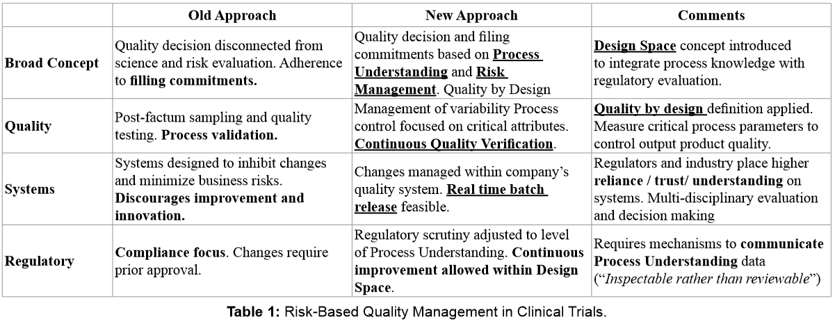 Besides being a new expectation by regulatory agencies under Good Clinical Practices, Quality by Design (QbD) and Risk-Based Quality Management (RBQM) concepts are receiving attention on a world-wide basis. As the industry's utilization of risk-based monitoring continues to increase along with the development and expansion of the area of RBQM, the need for the integration of these two concepts becomes apparent. The premise behind RBQM is that monitoring quality can be improved by leveraging existing data intelligence. This, in turn, calls for more robust quality assurance (QA) systems focused and efficient resource utilization and allocation at the clinical site level. RBQM is the proactive identification and mitigation of risks. By combining these two concepts, the inherent risks identified up front can feed into the design of the risk-based monitoring plan QbD. RBQM requires development of well-defined and relevant metrics, key performance and quality indicators (KP-QI), as well as a solid process for review and follow-up of the identified signals. Both aspects need to be supported by robust information management as well as training and cross-functional communication strategies.
